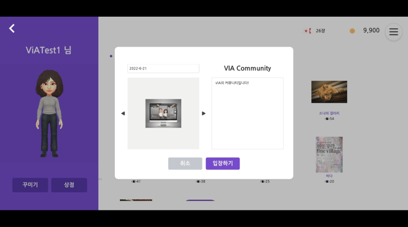 ViA는 Virtual in Art의 줄임말로 가상현실 전시회 플랫폼입니다.