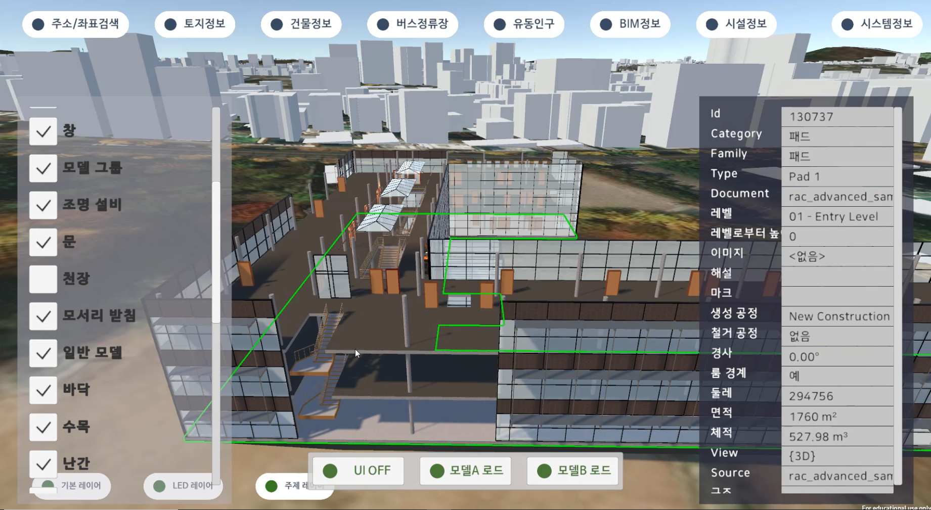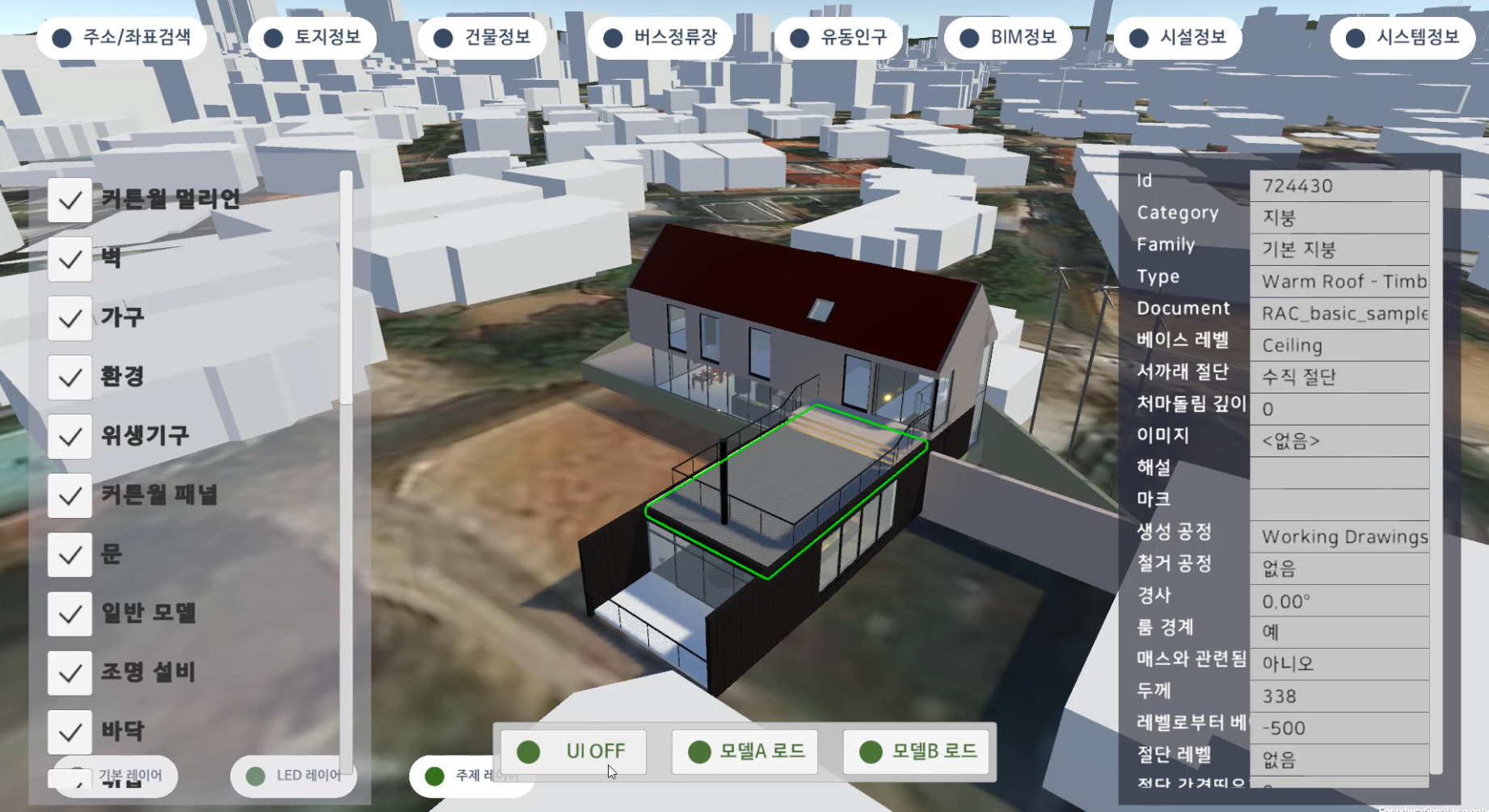 - BIM 모델 지도 환경 배치, BIM 모델 및 레이어 정보