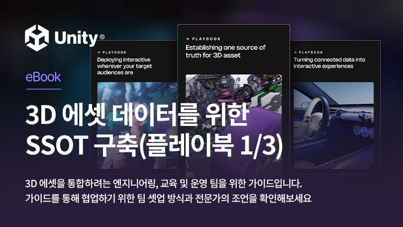 이번 3가지 플레이북 시리즈 중 첫 번째 전자책에서는, 풍부하고 몰입감 있는 3D 환경을 만들고 협업하기 위한 팀 셋업과 관련한 전문가의 조언을 제공합니다.