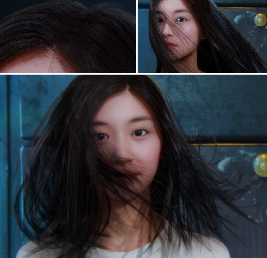 라이팅을 좀 더 강하게 주니까 사람의 민낯이 노출되는 것처럼 보이더라고요. 그래서 화장하듯 캐릭터 얼굴의 리소스를 수정해 보완해 주어야만 했습니다. 이런 부분들이 실제 사람과 비슷하게 느껴지는 점이 작업하면서 무척 재미난 경험이었습니다.