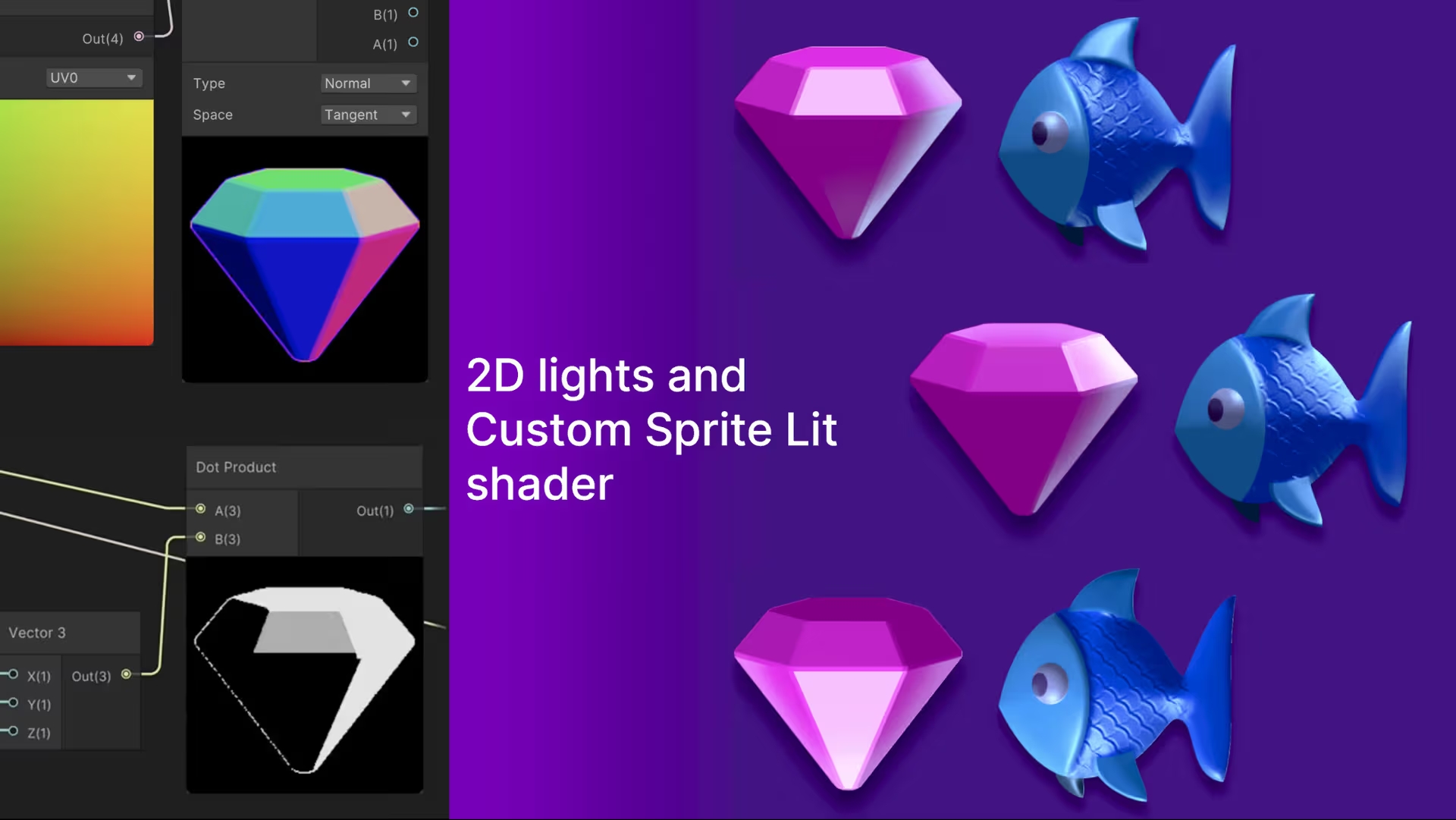 전역 장면 조명과 독립적인 조명 효과를 만들고 싶다면 스프라이트 사용자 정의 조명 셰이더를 사용하는 것을 고려하세요. 이 셰이더는 씬 조명을 대체하며 2D 광원 텍스처 정보를 수정하고 각 조각의 조명을 제어할 수 있습니다. 결과는 매치 3 게임의 조각 위로 움직이는 반짝이는 효과와 같은 스프라이트의 창의적인 조명입니다.